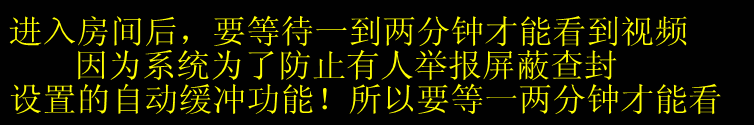 我们软件设置的自动缓冲功能,为了防止一些软件的搜索查封功能,点击房间后等待一到两分钟的缓冲时间,然后就自动进入,不然看不到视频!
